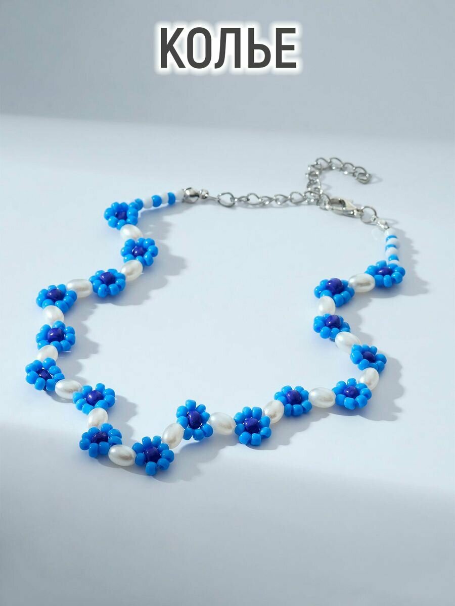 Queen fair Колье «Бисер» незабудки, цвет сине-белый, 30 см интересное:
