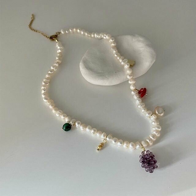 Колье чокер из натурального барочного жемчуга с подвеской Виноград интересное: