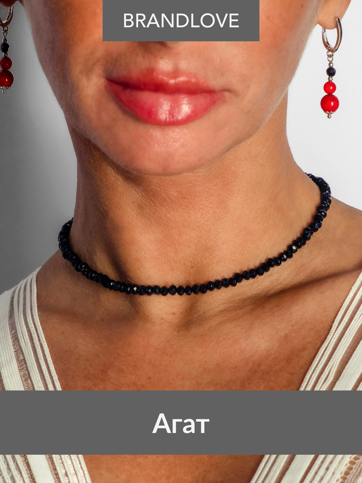 Чокер из натуральных камней Natural черный агат, ожерелье в подарок девушке