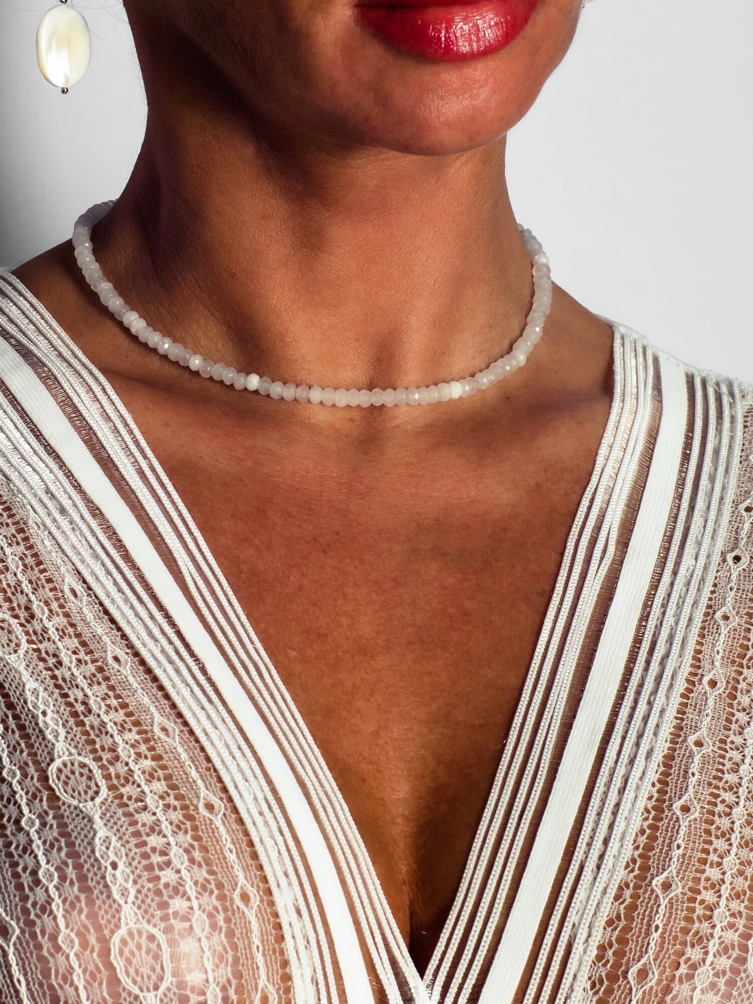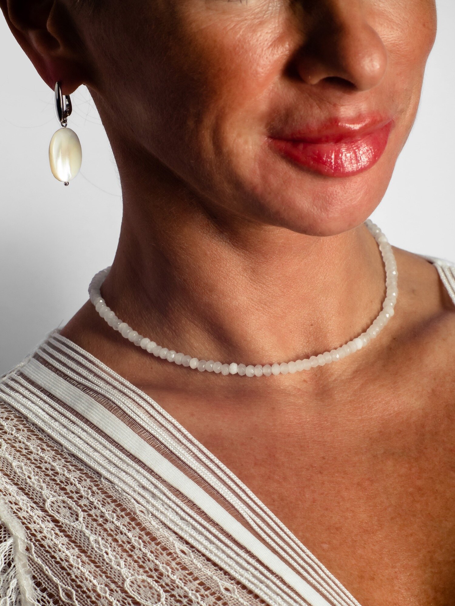 Купить Чокер из натуральных камней Natural белый халцедон, бусы ручной работы