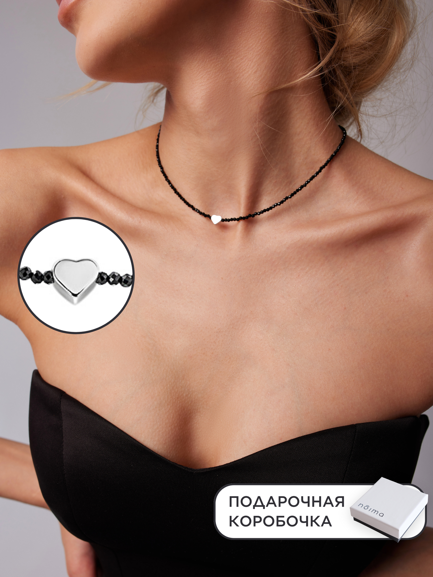 Чокер из бисера женский черный с серебряным сердцем интересное: