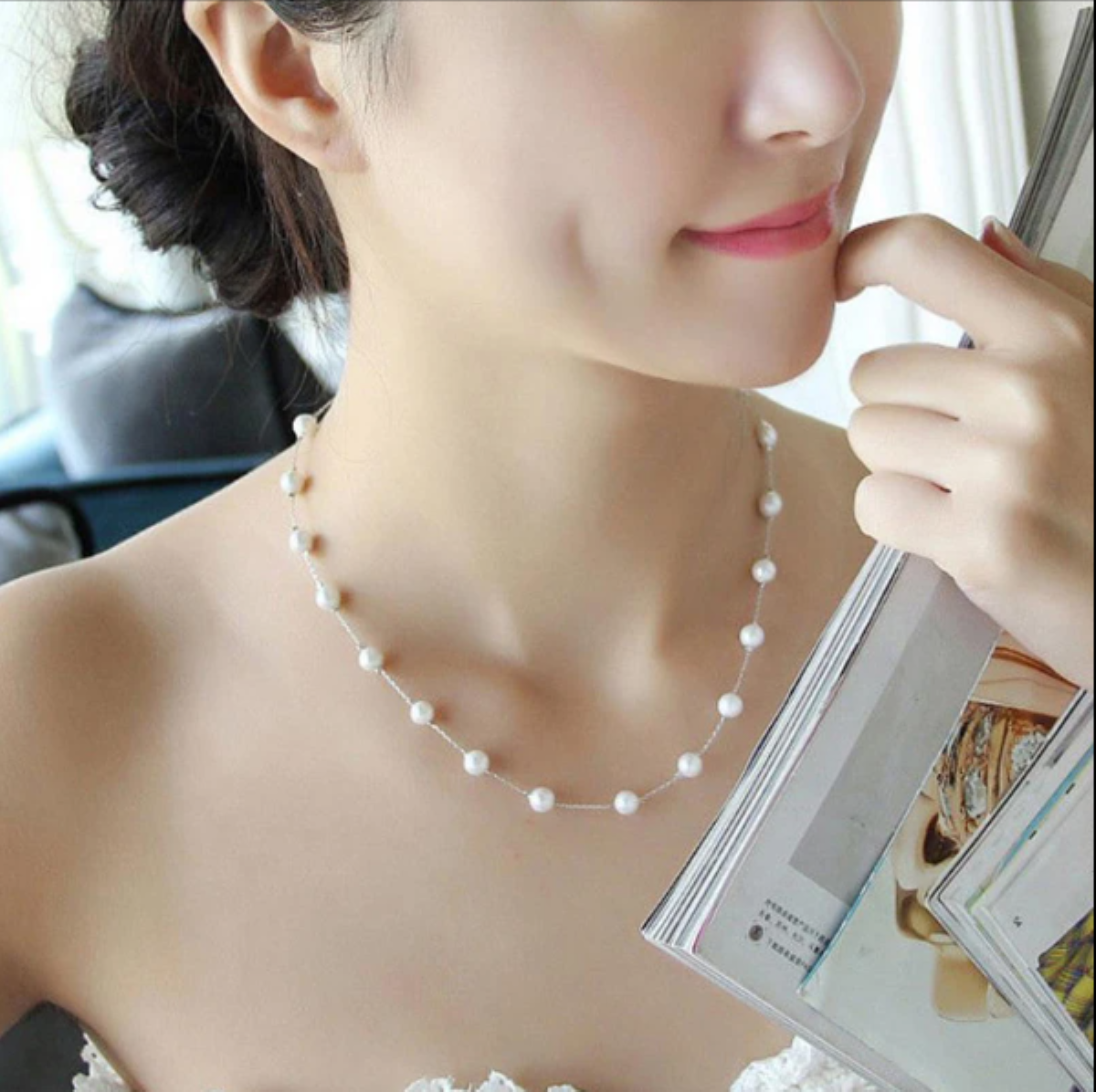 цепочка с бусинами, жемчужное ожерелье, ожерелье, чокер, колье, жемчуг