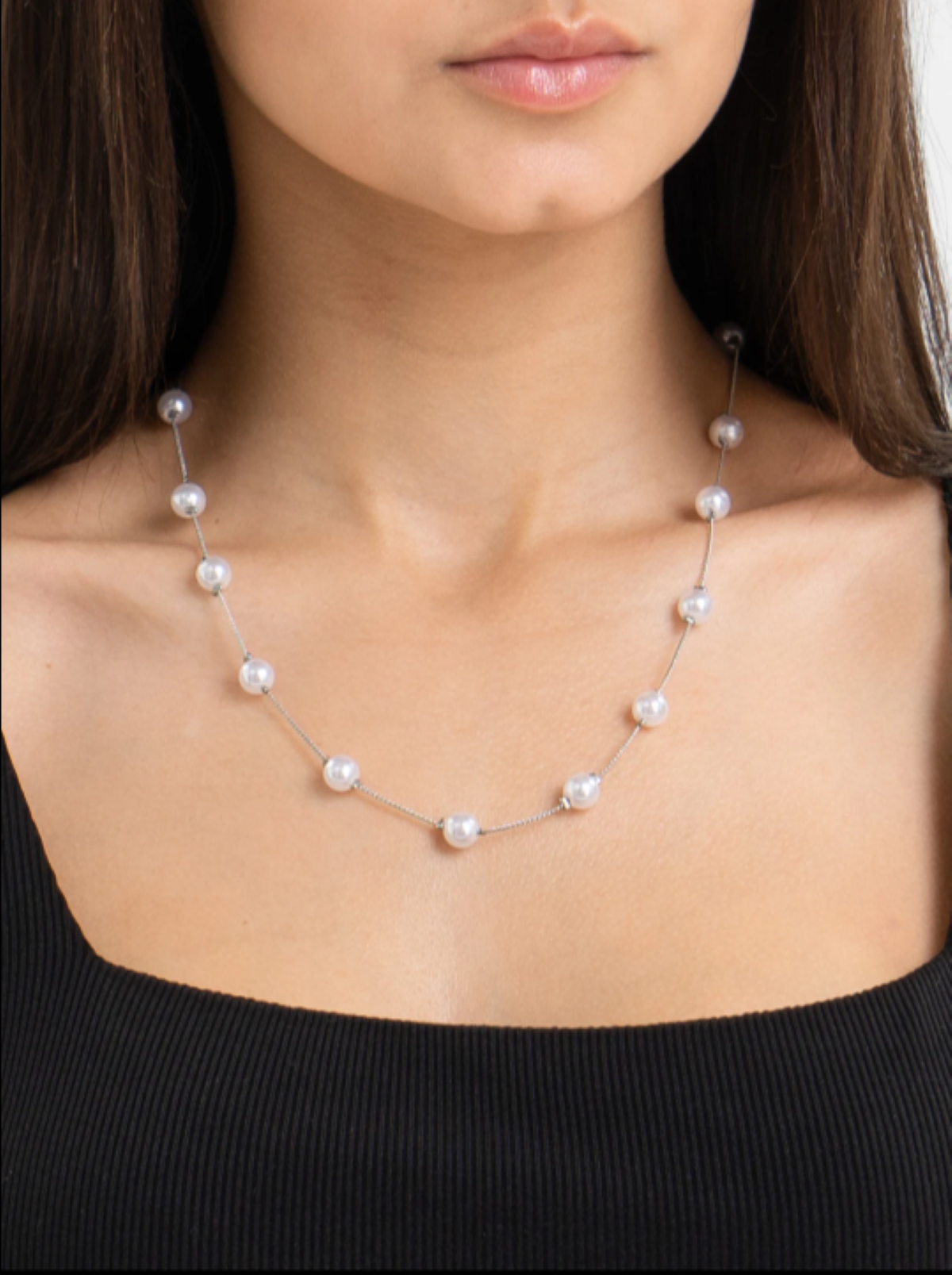 Колье Стайл Групп, жемчуг имитация, длина 45 см, серебристый