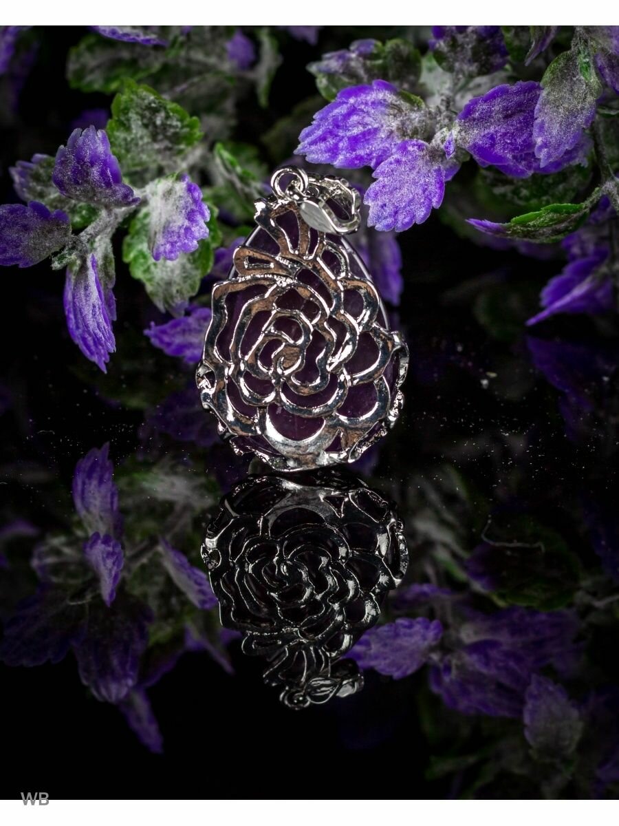 Купить Кулон / Подвеска бижутерная "Роза" ажурная из натурального аметиста подарок девушке женщине на 8 марта
