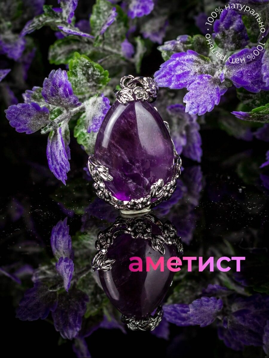 Кулон / Подвеска бижутерная "Роза" ажурная из натурального аметиста подарок девушке женщине на 8 марта интересное: