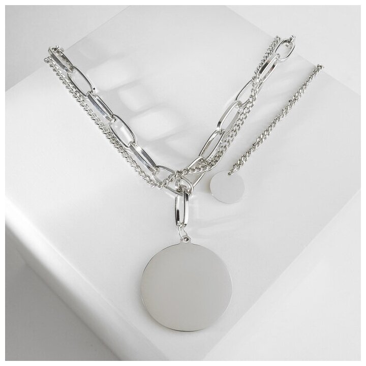 Купить Кулон "Цепь" плоский диск 2 нити, цвет золото, 42 см