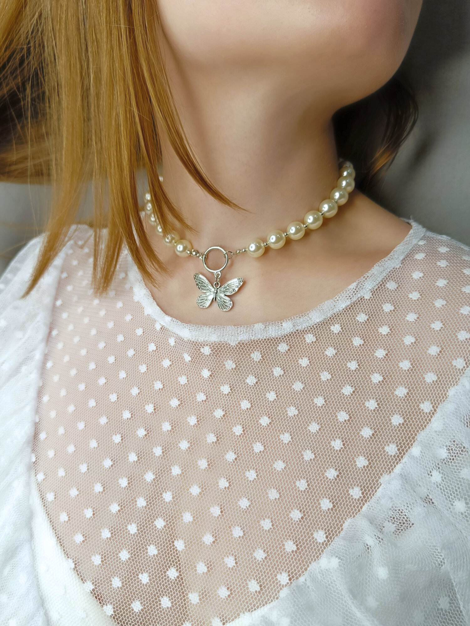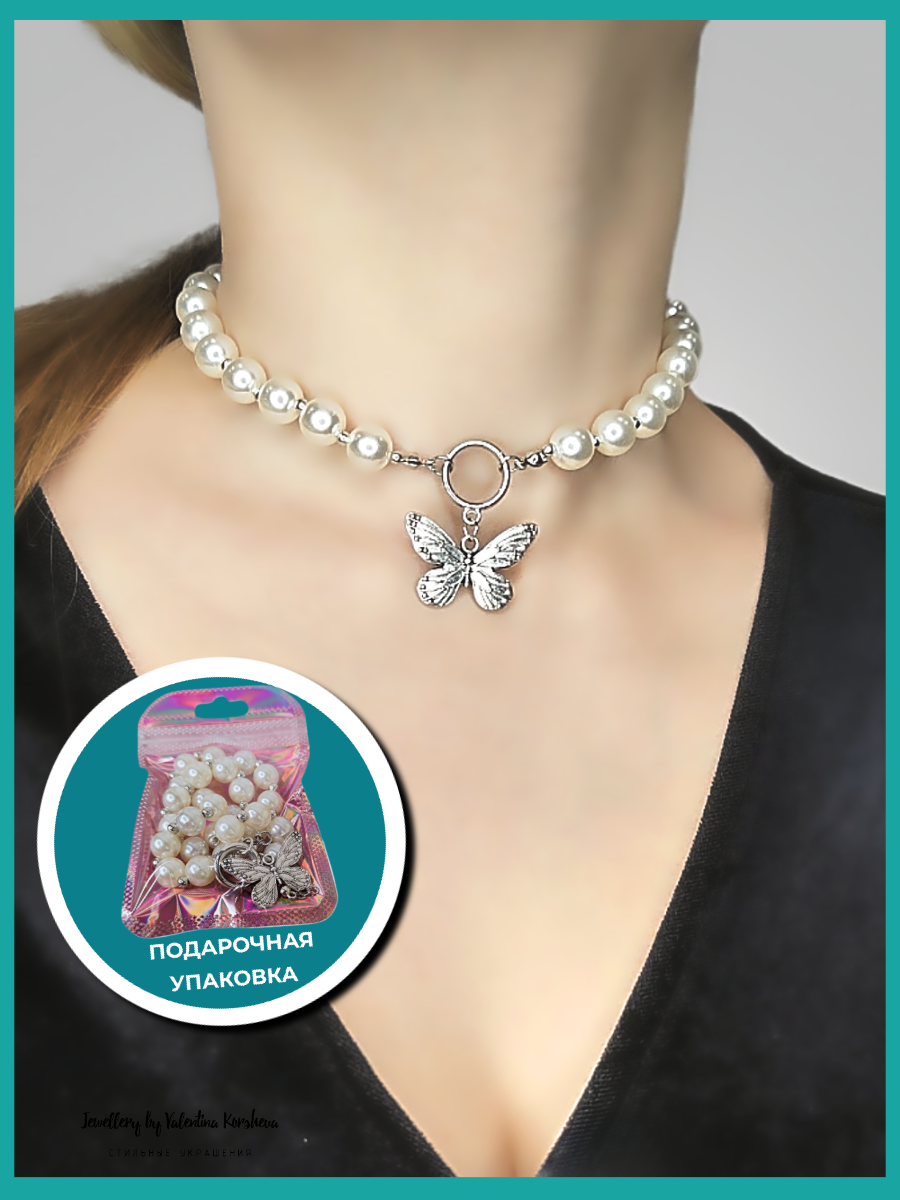 "С бабочкой и жемчугом", нарядное колье на шею, для девочек и женщин, в подарочной упаковке интересное: