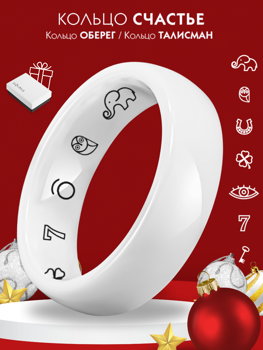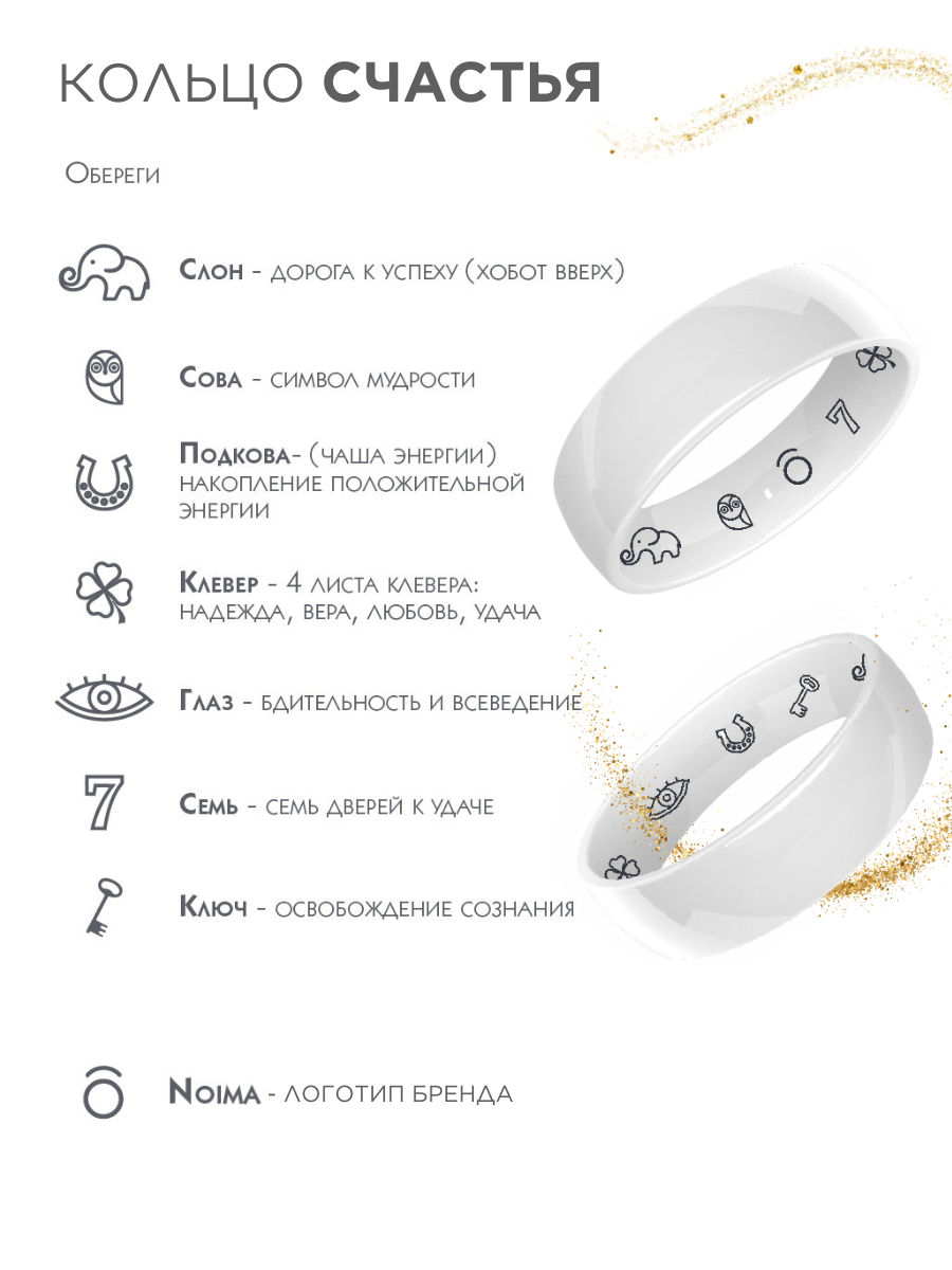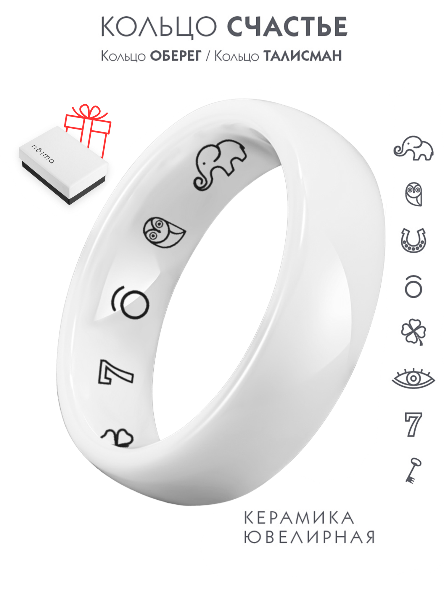 СохранитьКольцо керамическое белое NOIMA женское мужское "Знаки счастья" 20 размер, парные кольца интересное: