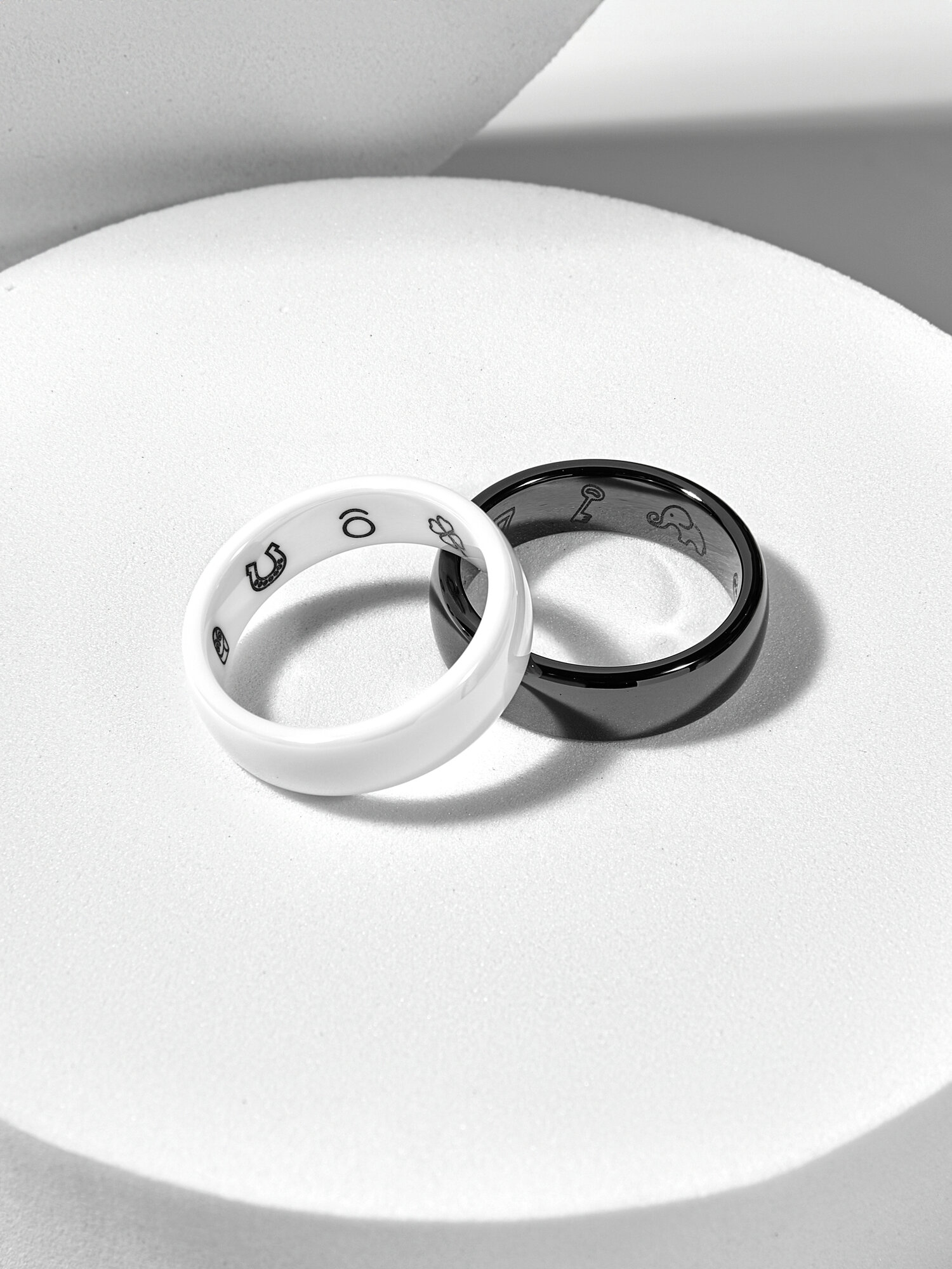 Кольцо керамическое белое "Знаки счастья" женское мужское NOIMA 18.5 размер, парные кольца