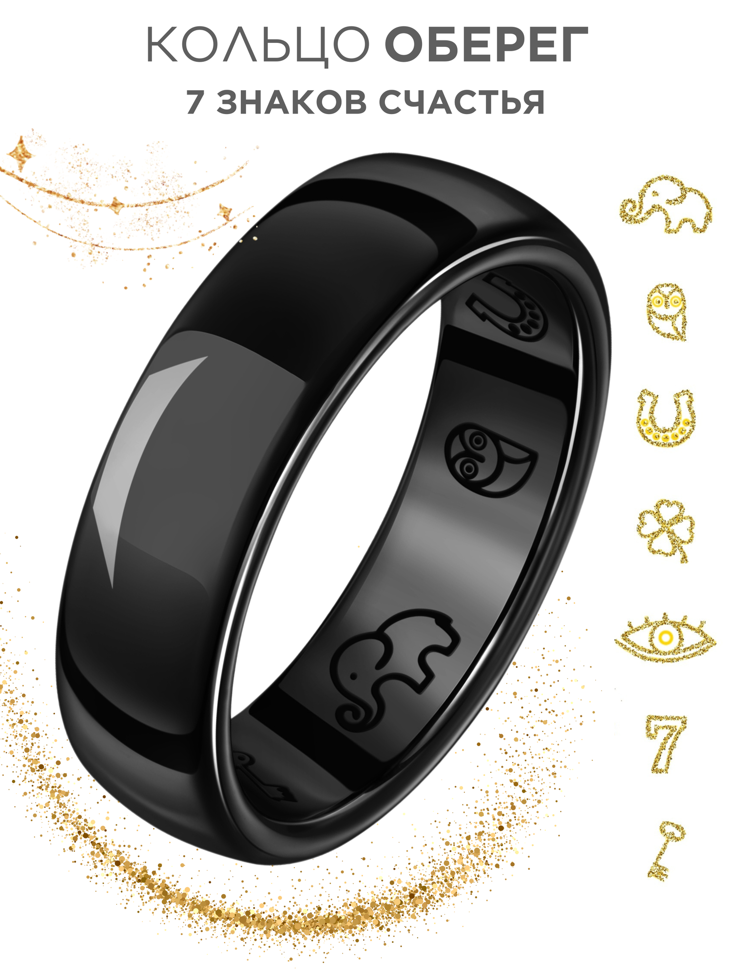 Кольцо оберег из керамики "Знаки счастья" черное женское мужское 19.5 размер, парные кольца