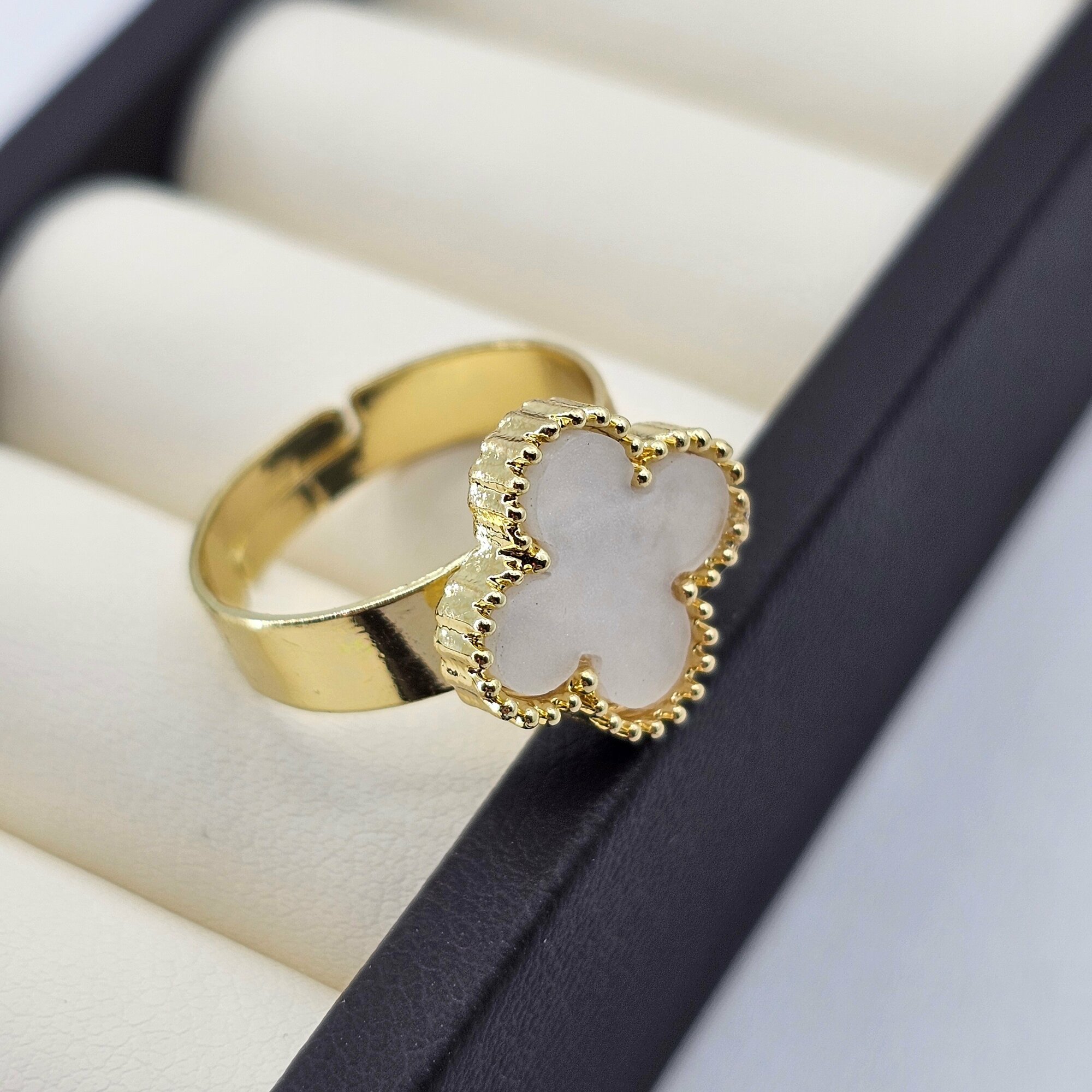 Кольцо женское бижутерия с перламутром Клевер безразмерное регулируемое для девочек и девушек, стильные трендовые украшения на новый год