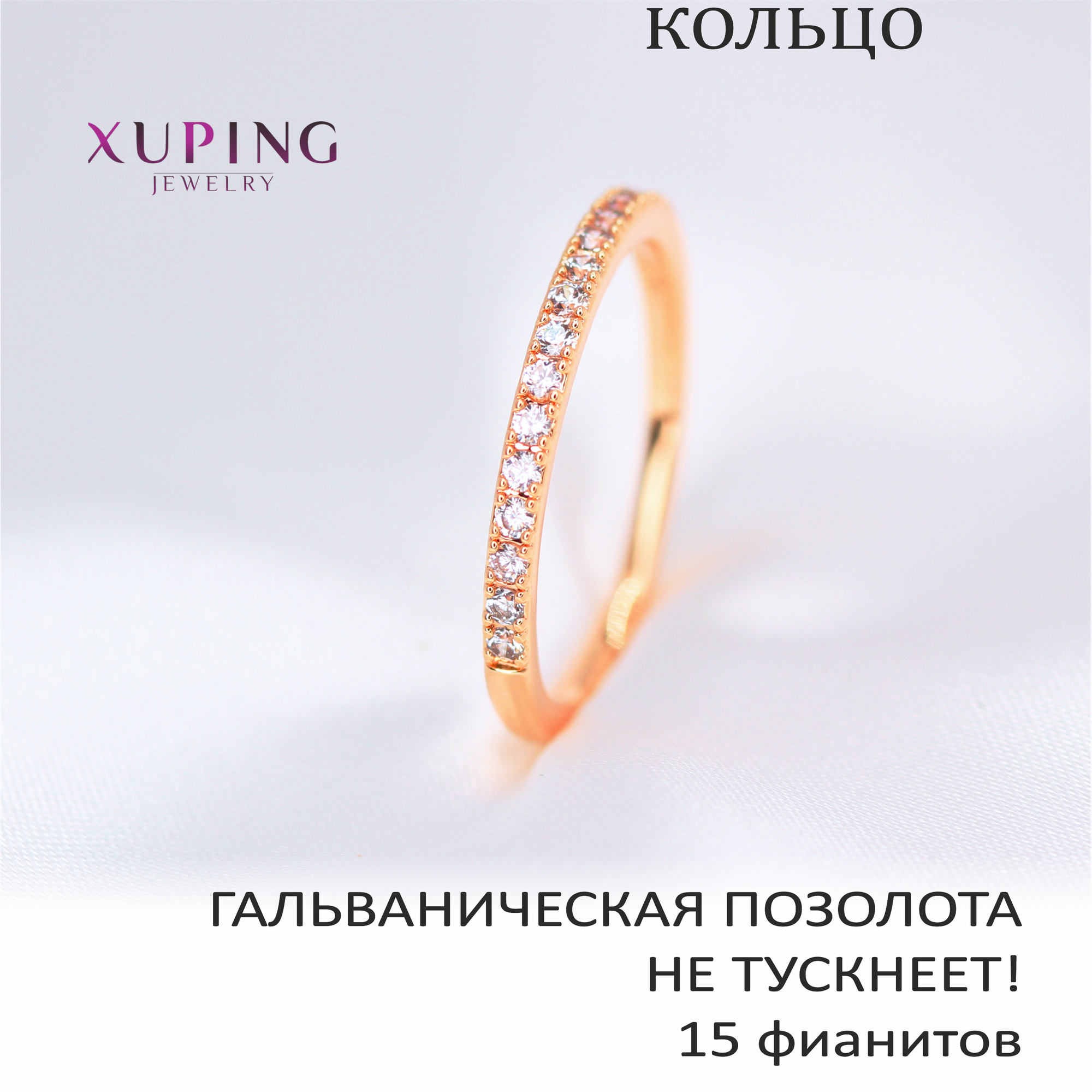 Кольцо тонкое 1,8 мм, 15 фианитов, XUPING JEWELRY, гальваническая позолота, р-р 18