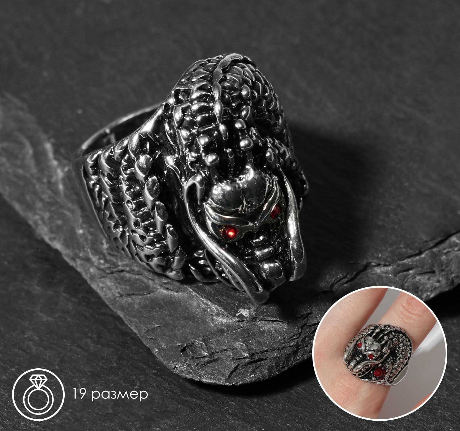 Кольцо "Перстень" дракон с красными глазами, цвет красный в чернёном серебре, 19 размер 9669462