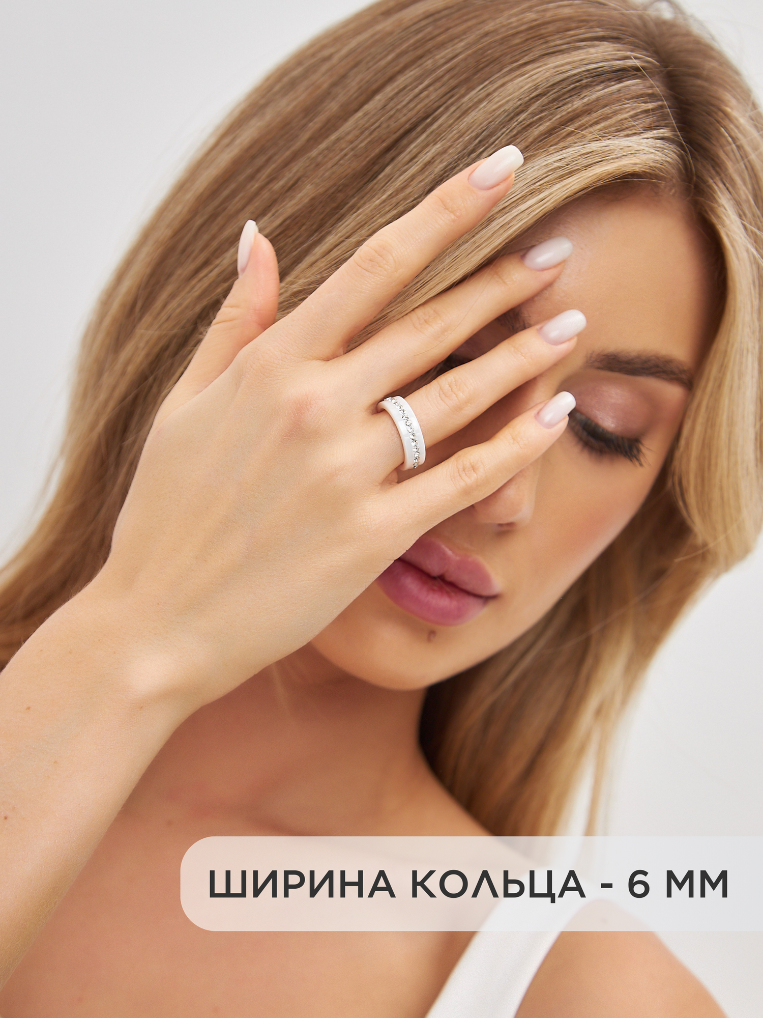 Кольцо бижутерия женское из белой керамики с гравировкой 18.5 размер