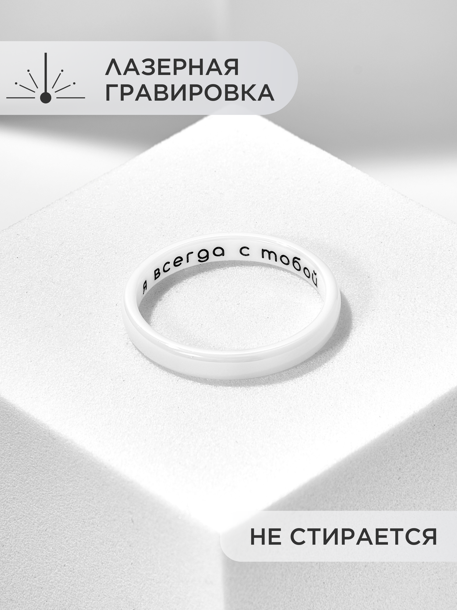 | Комплектация | Кольцо из ювелирной керамики с гравировкой 1шт, брендированная подарочная коробка 1шт., открытка 1шт. |
