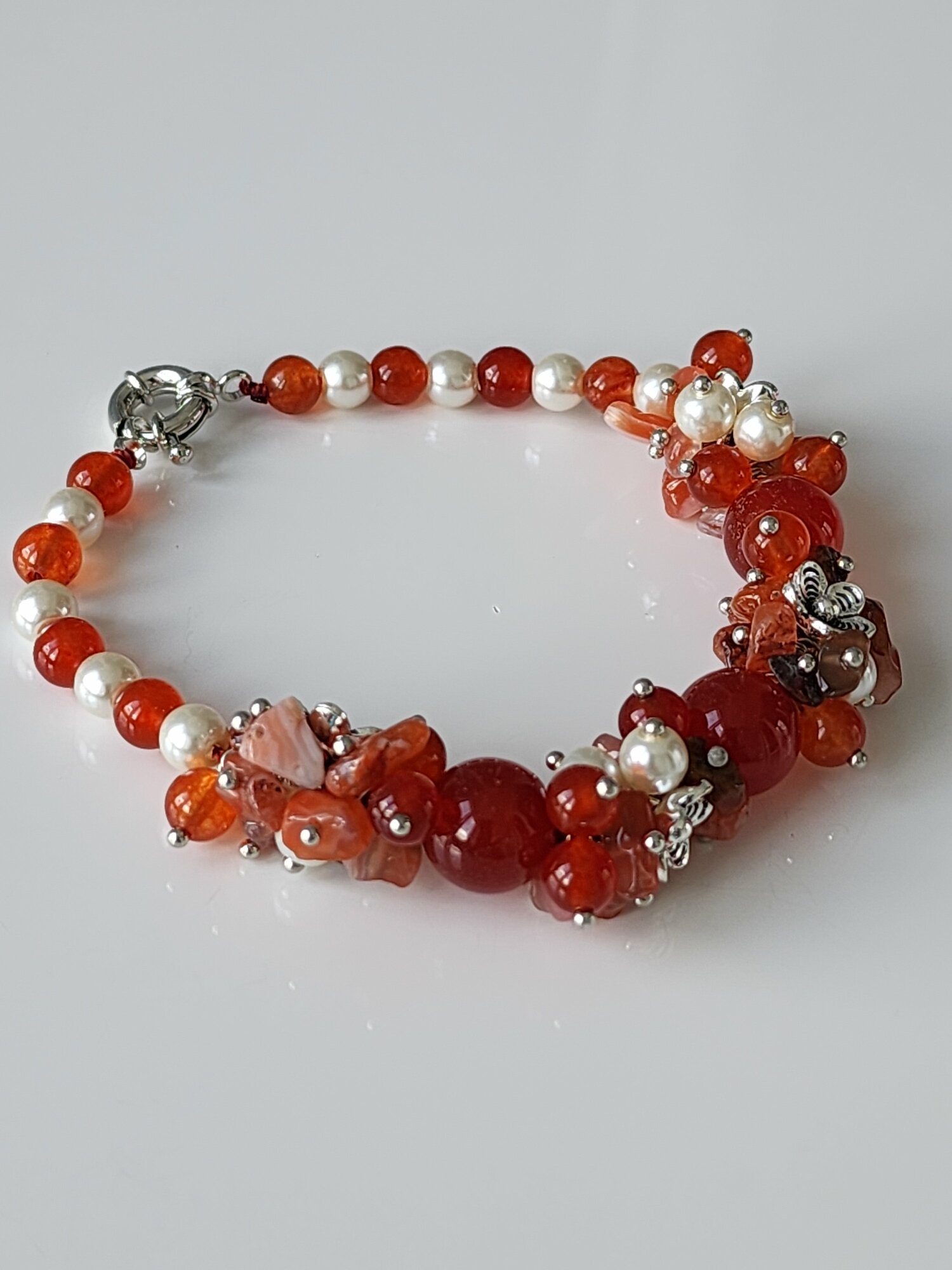 Комплект бижутерии: серьги, колье, браслет, нефрит, жемчуг имитация, размер браслета 20 см, размер колье/цепочки 46 см, красный