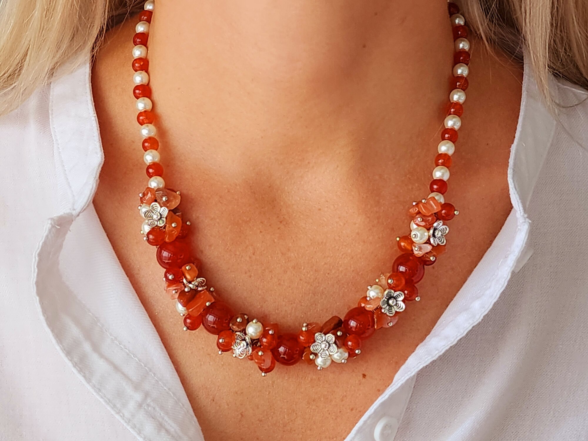 Купить Комплект украшений (серьги, браслет, колье) с сердоликом