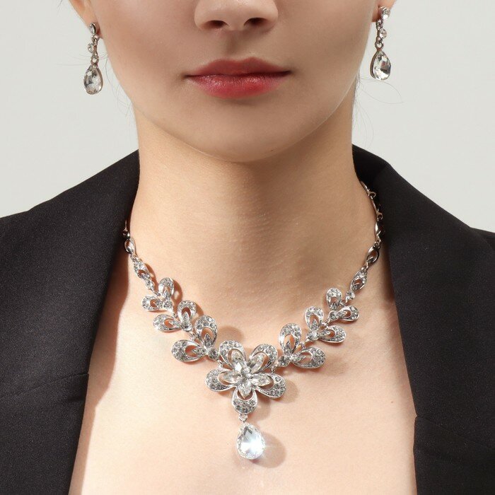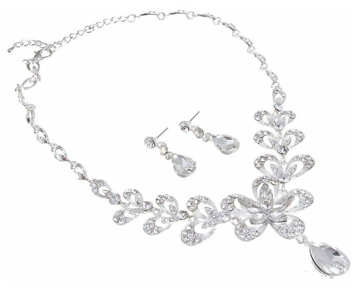 Набор 2 предмета: серьги колье "Роскошь" цвет белый в серебре