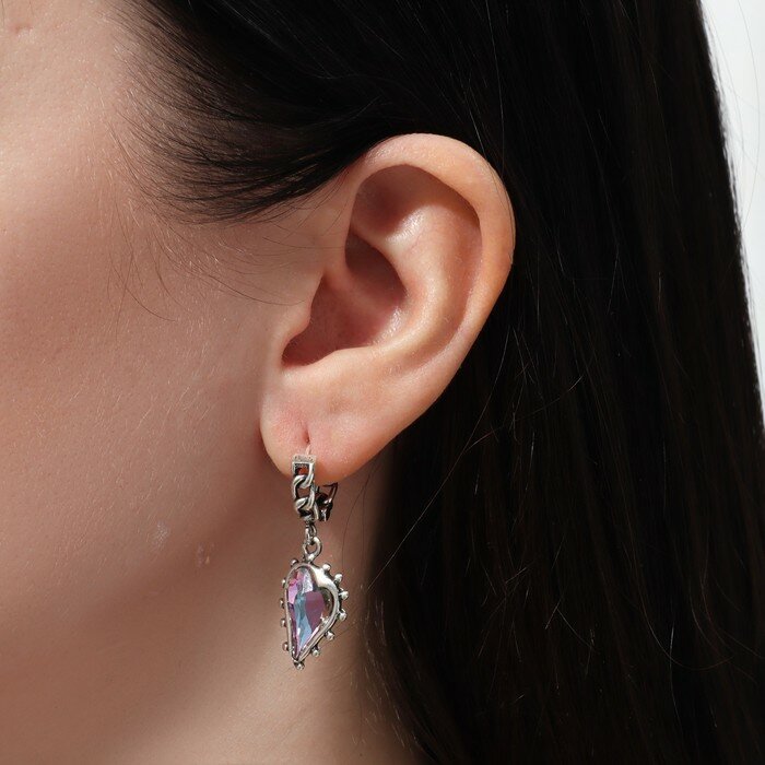Серьги висячие со стразами «Сердце» асимметрия, цвет фиолетовый в чернёном серебре, 6,2 см интересное: