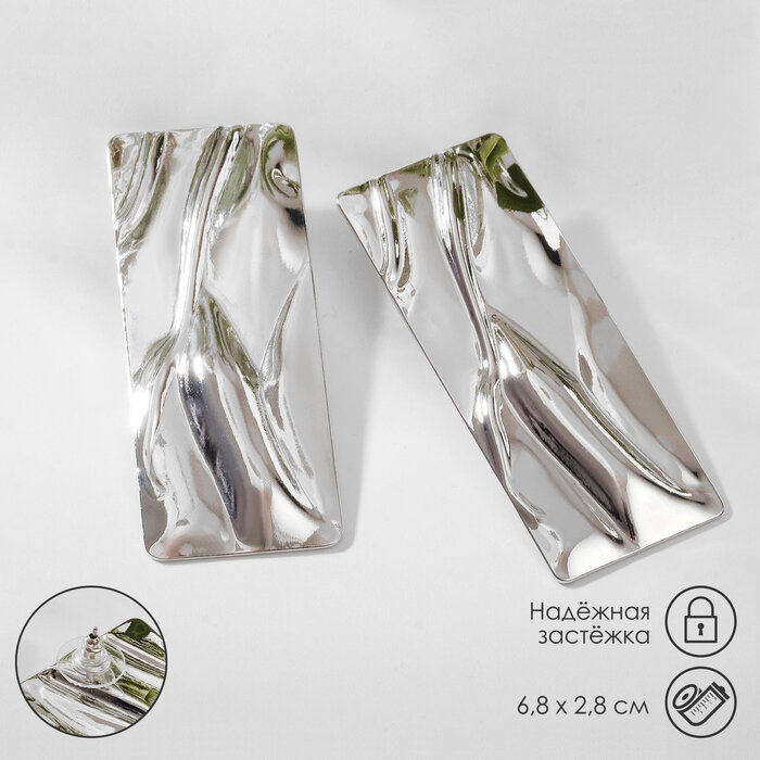 Серьги металл "Атмосфера" прямоугольник, цвет серебро
