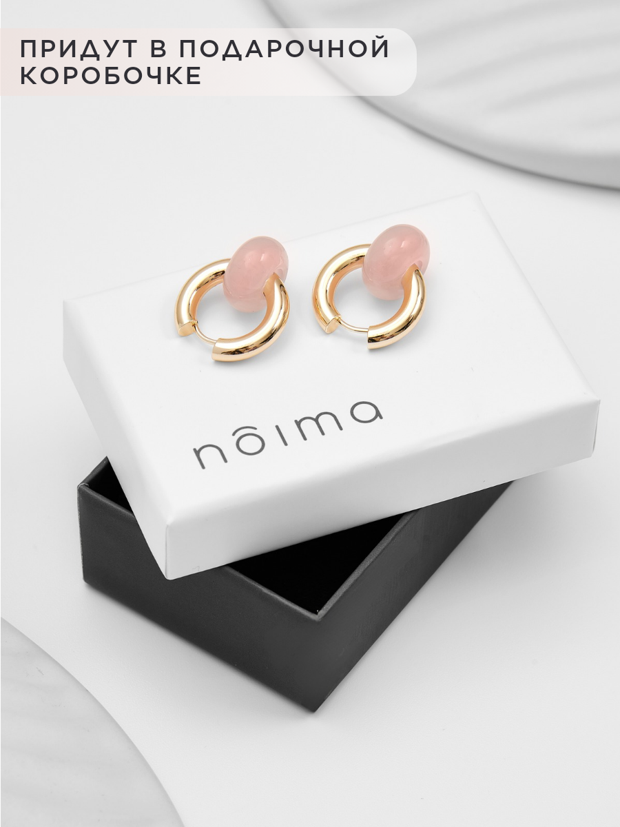 Серьги-трансформеры Noima, кахолонг, кварц, агат, размер 20 мм, розовый в золоте