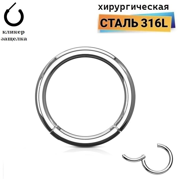 Кольцо пирсинг из медицинской стали, сегментное, универсальное /1*10 мм