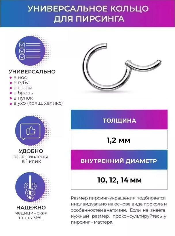 Кольцо пирсинг из медицинской стали, сегментное, универсальное /1.2*14 мм