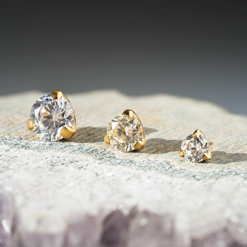 Пирсинг Implant Grade лабрет титан фианит Gold 1.2 мм - 3 мм