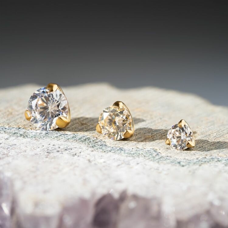 Купить Пирсинг Implant Grade лабрет титан фианит Gold 1.2 мм - 2.5 мм