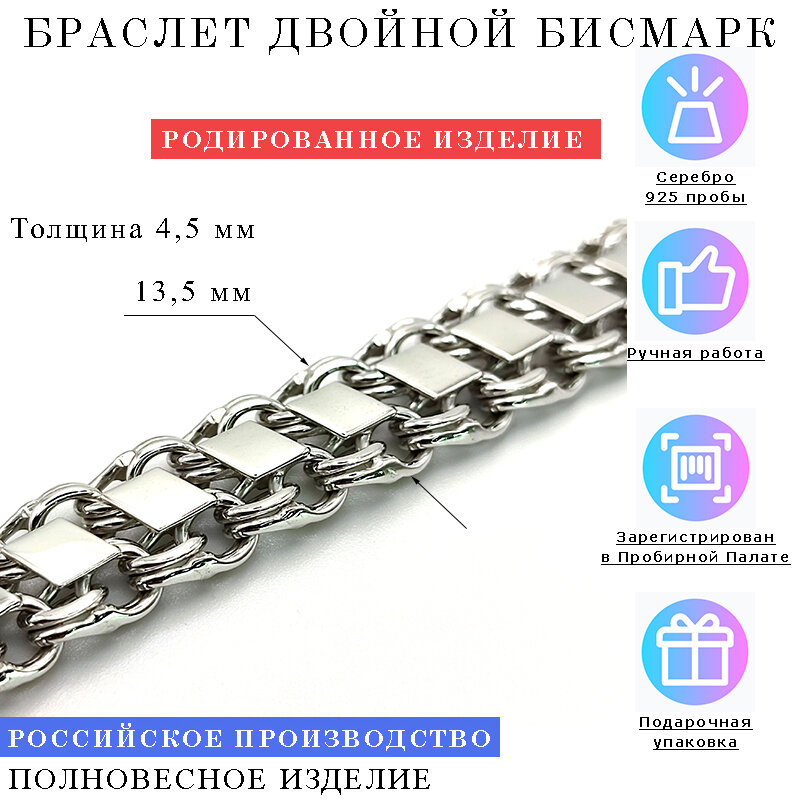 Ниже Вы можете прочитать отзывы на Браслет бисмарк двойной серебряный, 925 проба, размер 20 см., ознакомится с подробными характеристиками, посмотреть интересные обзоры и фотографии на Браслет бисмарк двойной серебряный, 925 проба, размер 20 см..