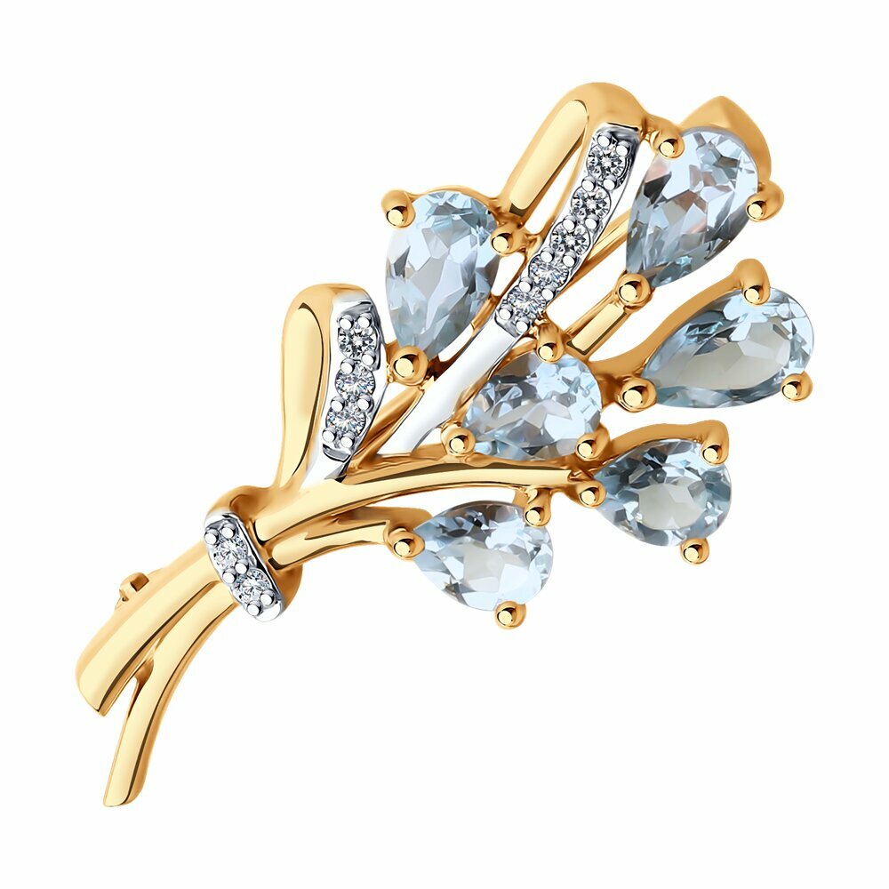 Купить Брошь SOKOLOV из золота с топазами и фианитами 740405