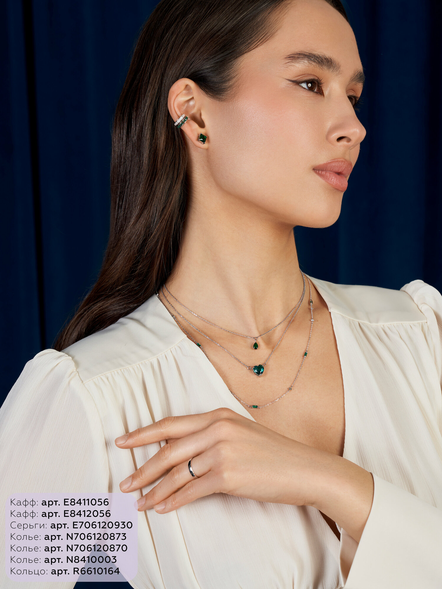 Колье MIESTILO, серебро, 925 проба, родирование, кварц синтетический, длина 45 см., зелeный