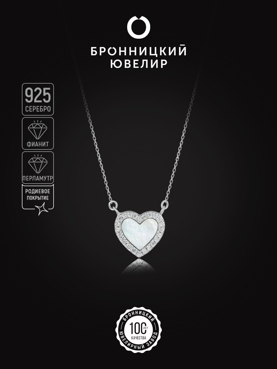 Колье Бронницкий Ювелир, серебро, 925 проба, родирование, перламутр, фианит, длина 46 см., белый