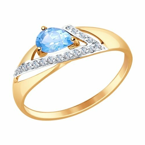 Кольцо SOKOLOV, красное золото, 585 проба, фианит, топаз, размер 17, голубой