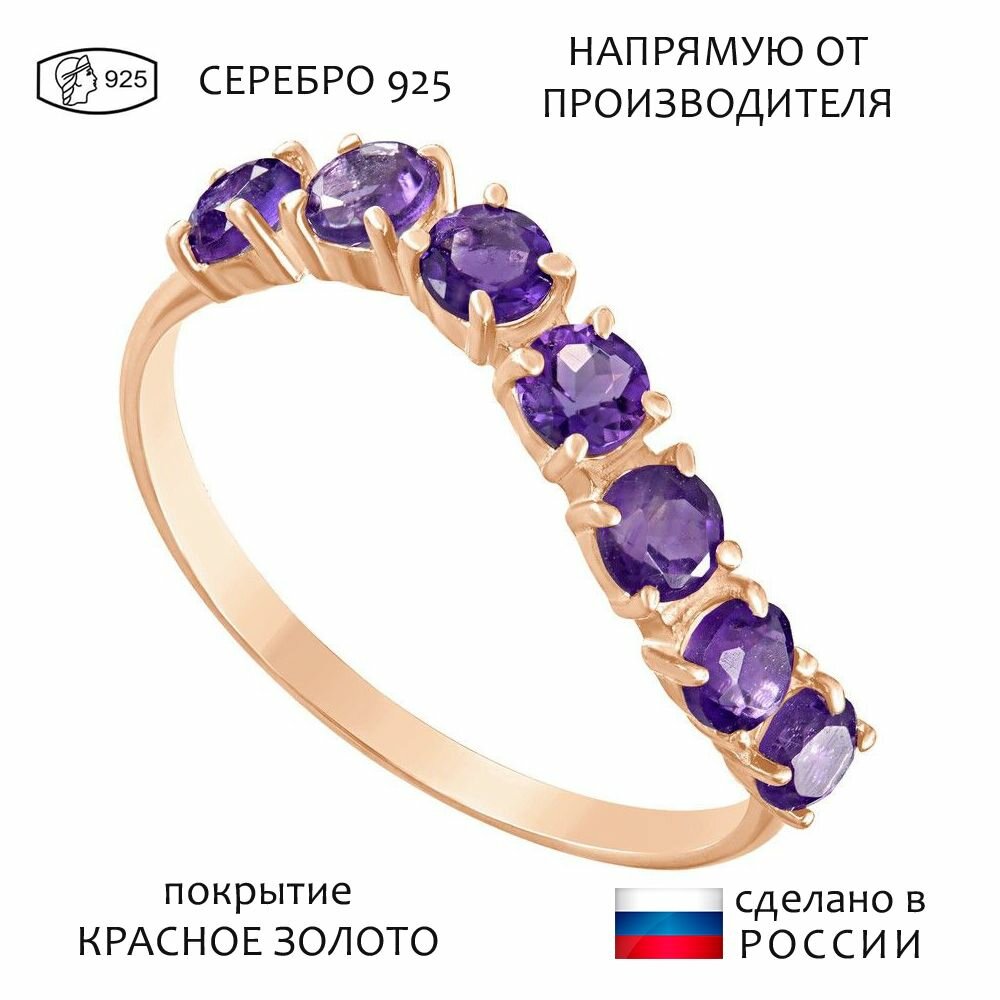 СохранитьСеребряное кольцо с натуральным аметистом (темный) - коллекция Волна / покрытие Красное Золото (размер 18,5) интересное: