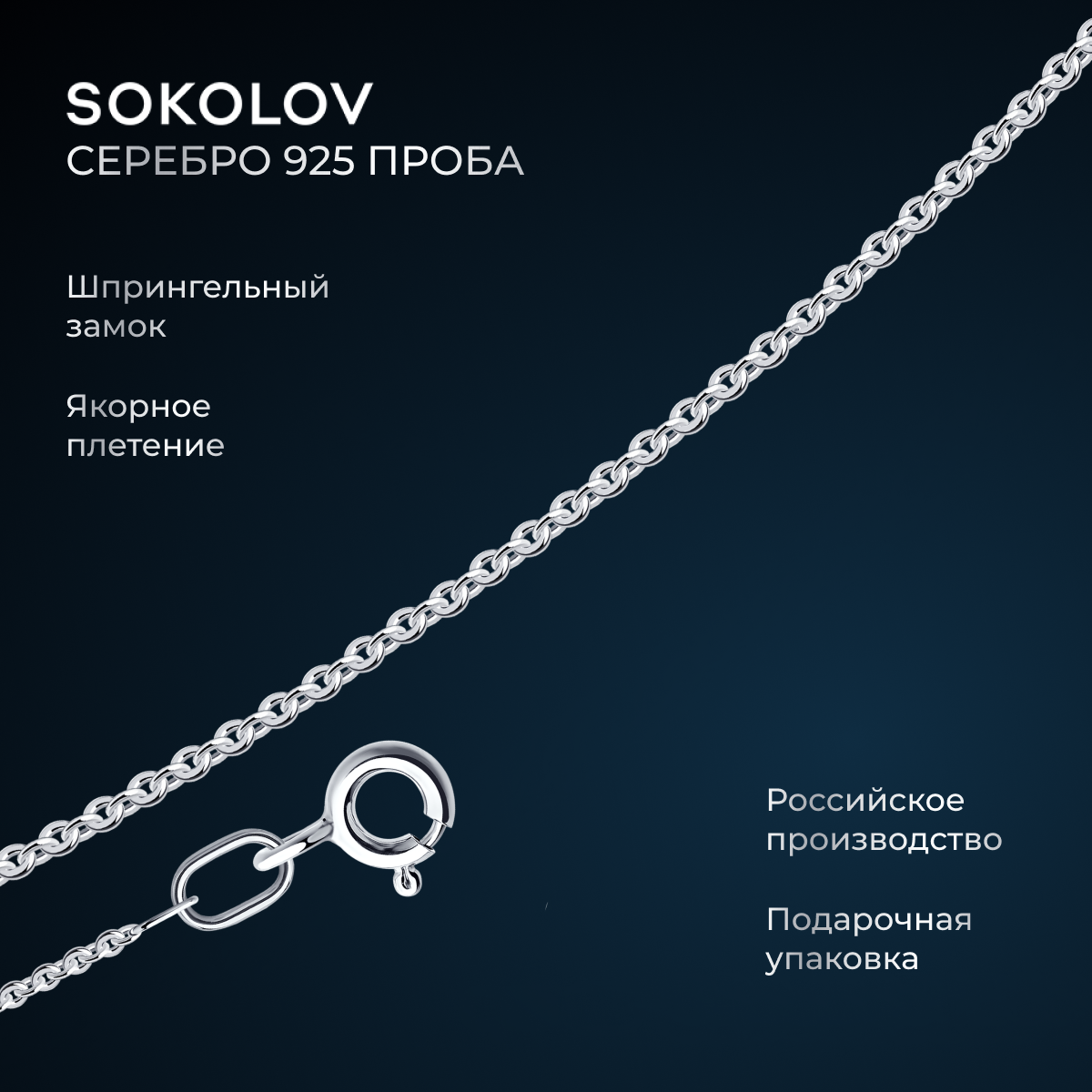 Цепь SOKOLOV, серебро, 925 проба, длина 55 см, средний вес 1.44 г