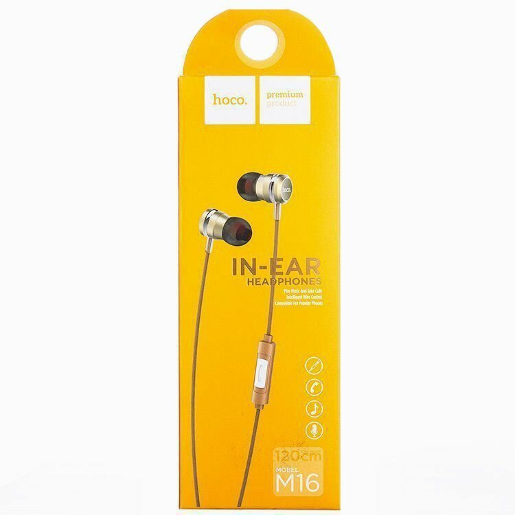Наушники HOCO M16 Ling Sound вакумные, 1,2м, золотой