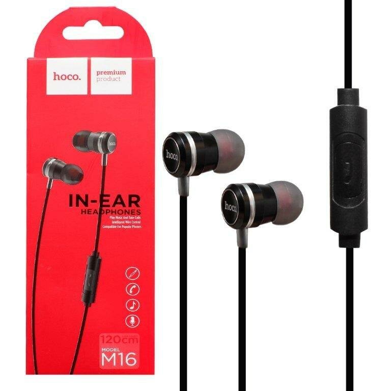 Гарнитура HOCO M16, Ling Sound, микрофон, кабель 1.2м, цвет чёрный (1/30/300)
