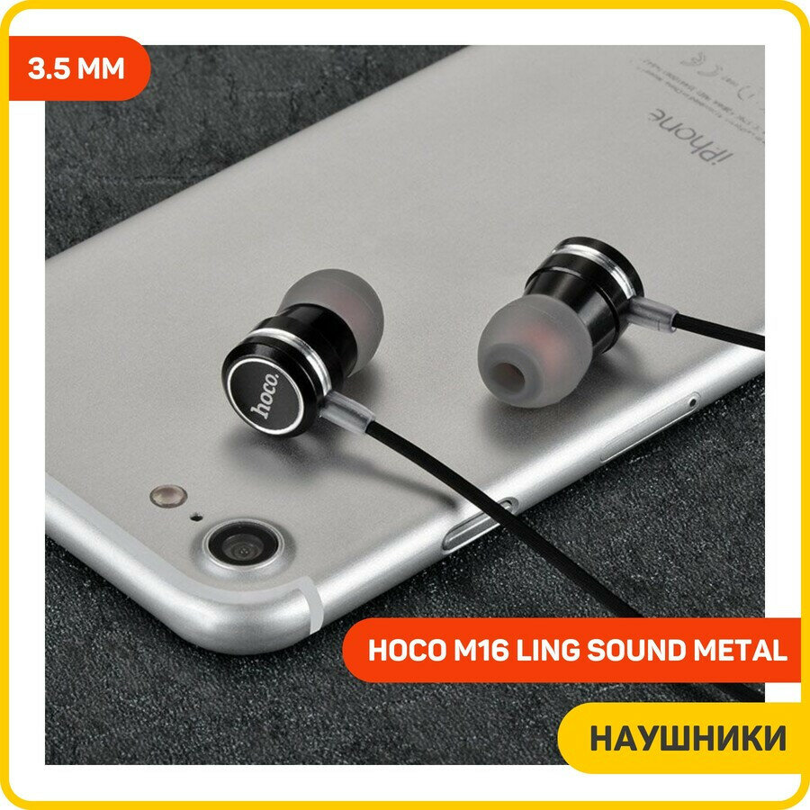 Наушники вкладыши с микрофоном Hoco M16 Ling Sound Metal Black, мобильная гарнитура, черные