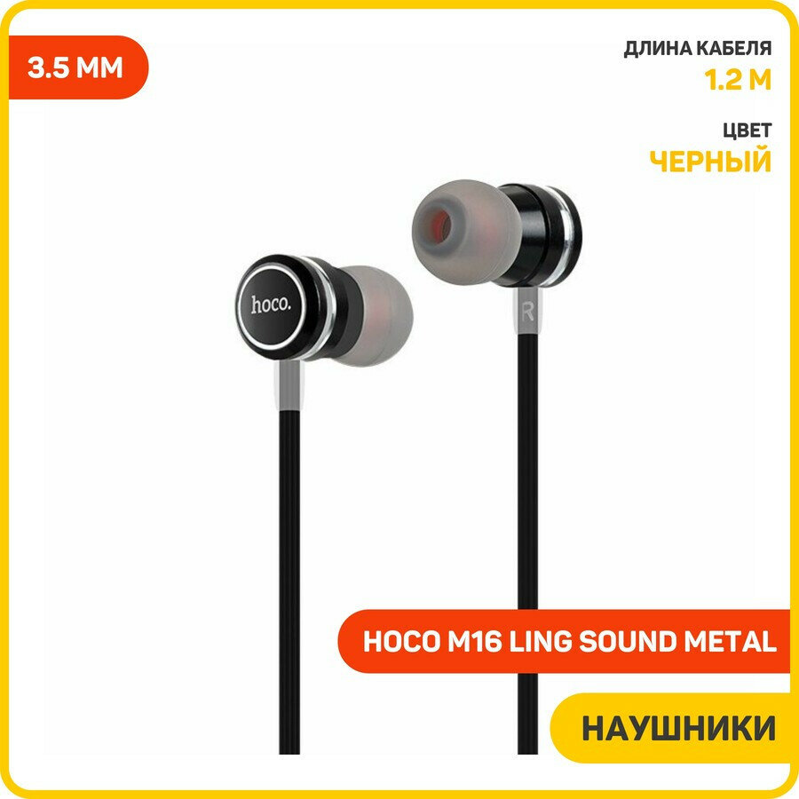 91291 Наушники вкладыши с микрофоном HOCO M16 LING SOUND METAL BLACK (черные)