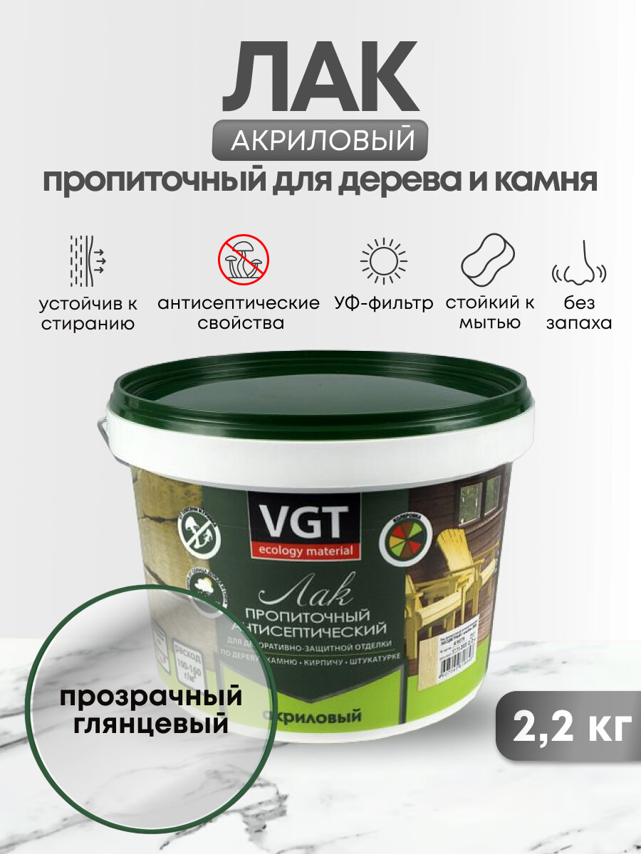 Лак пропиточный с антисептиком для дерева и камня Vgt , акриловый, 2,2 кг, сосна