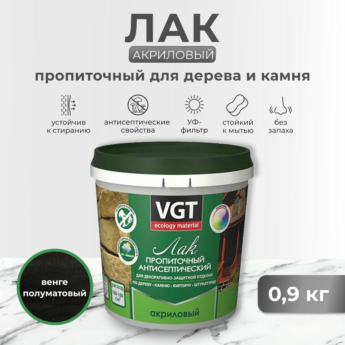 Лак VGT пропиточный антисептический, полуматовый, 0.9 кг, 0.9 л, Венге
