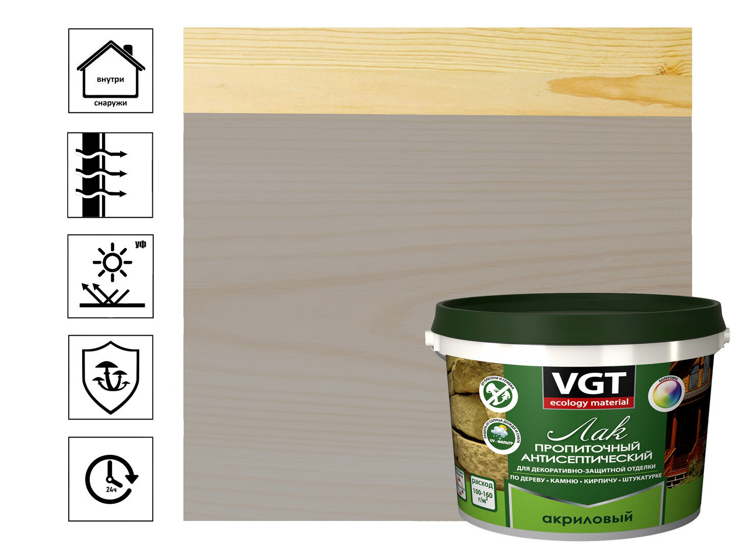 Лак акриловый пропиточный с антисептиком "ДУБ светло-серый" VGT 0,9кг