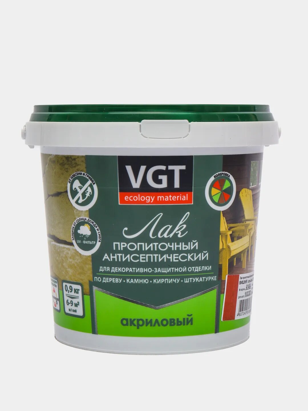 Лак акриловый пропиточный антисептический для дерева и камня VGT (9кг) калужница