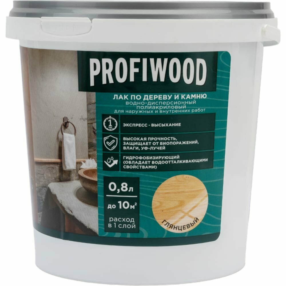 Лак по дереву и камню PROFIWOOD водно-дисперсионный полиакриловый Глянцевый 0,8л интересное: