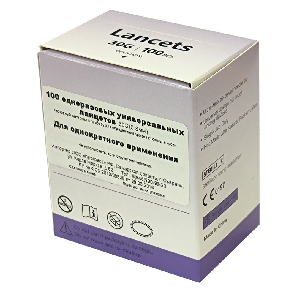 Ланцеты универсальные, стерильные, с иглой 30G, №100