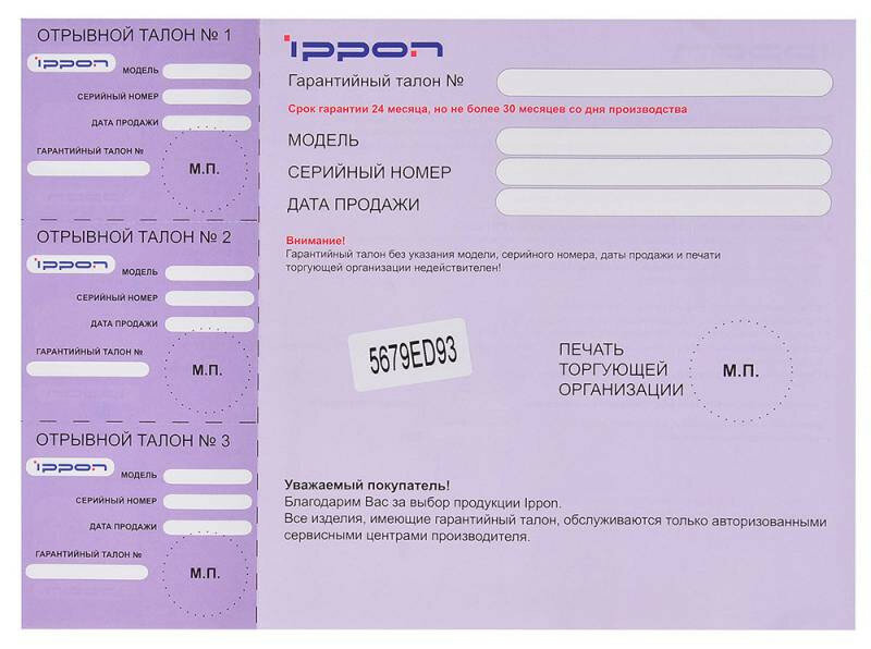 | Гарантийный срок | 1 г., актуальный срок гарантии указан в гарантийном талоне производителя, приложенному к товару, и может отличаться в большую или меньшую сторону на момент покупки. |