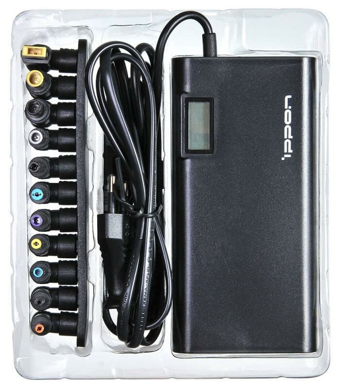 Адаптер питания для ноутбука Ippon SD65U BLACK автоматический 65W 15V-19.5V 8-connectors 1xUSB 2.1A от бытовой электросети LСD индикатор