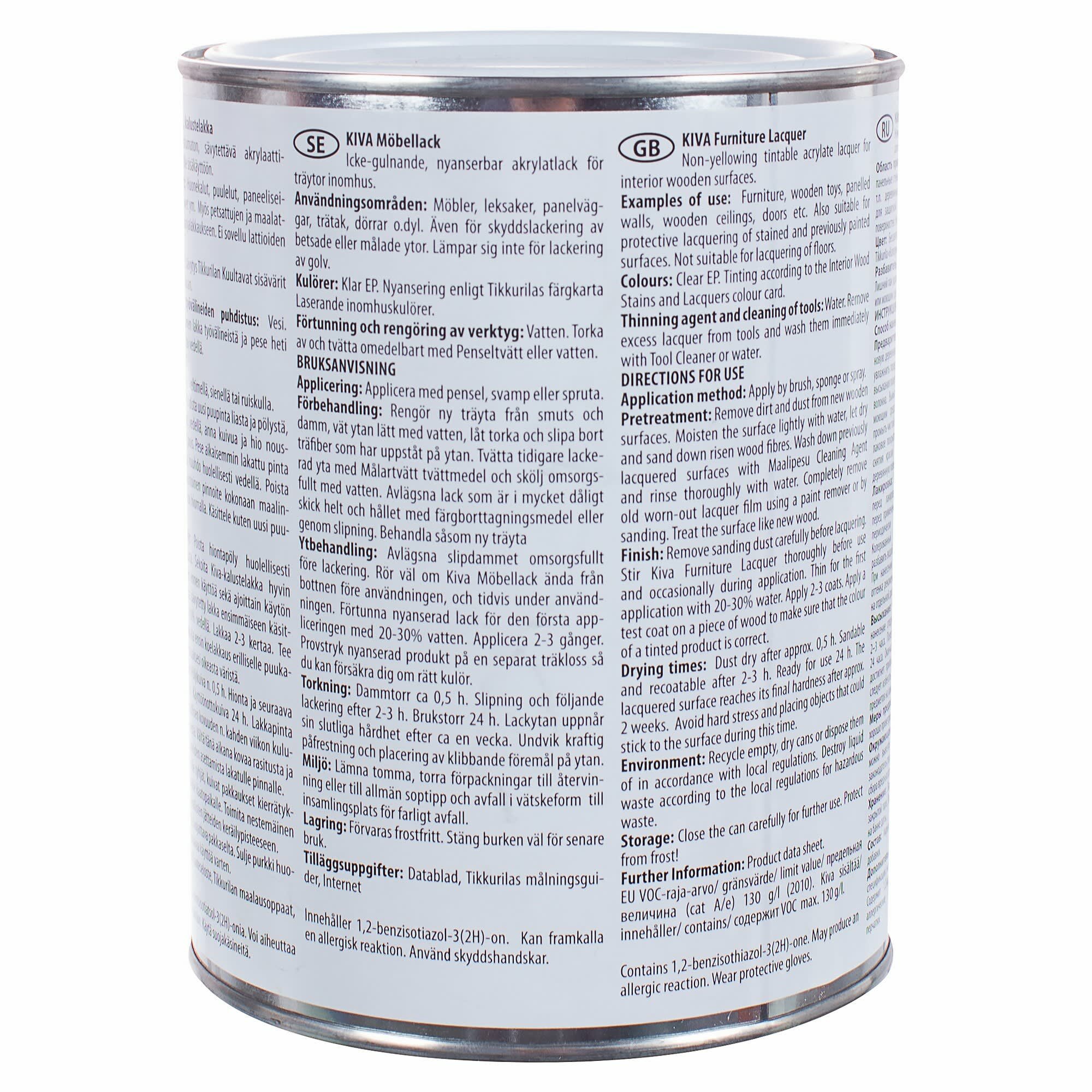 Лак акрилатный для мебели полуматовый Kiva 30 (Кива 30) TIKKURILA 0,9 л бесцветный (база EP)