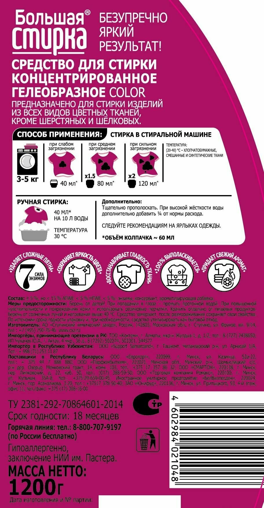 Большая Стирка Гель для стирки цветных тканей 1,2 л